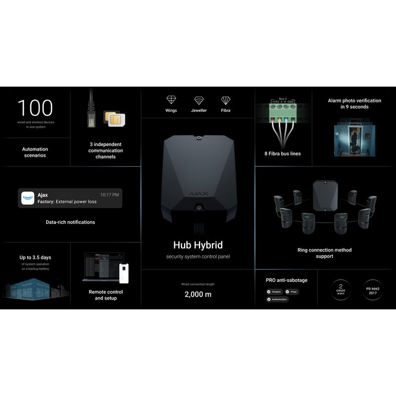 Ajax-Innovationen haben ein neues Niveau erreicht. Im Gegensatz zu der Technologie aus den 80er Jahren, die in der Sicherheitsbranche immer noch präsent ist, haben unsere Ingenieure Fibra entwickelt – eine kabelgebundene Technologie der digitalen Generation. Fibra kombiniert die Zuverlässigkeit von Kabeln mit der Freiheit der Funkverbindung. Ein gewöhnliches vieradriges Kabel, gekoppelt mit Fibra, weist absolut ungewöhnliche Eigenschaften auf. Bis zu 2.000 Meter Konnektivität, Kompatibilität mit allen Arten von Geräten, 60 Stunden Betriebszeit eines Systems bestehend aus 30 Geräten mit Backup-Batterie, fortschrittlicher Sabotageschutz, Fotoüberprüfungen, sofortige Benachrichtigungen, problemlose Installation und Fernkonfiguration über ein app – alles, was mit drahtlosem Ajax möglich war, ist jetzt mit Kabeln und Fibra verfügbar.