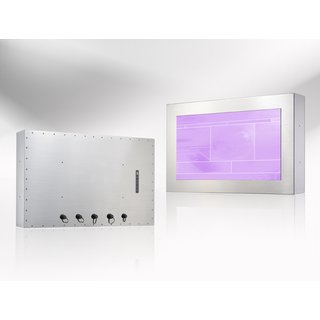 Die IP (Ingress Protection) Schutzart ist ein internationales Rating, welches den Grad des Schutzes gegen das Eindringen von Fremdkörpern wie z.B. Wasser oder Staub klassifiziert. Die Schutzart IP65 bietet einen vollständigen Schutz gegen Eindringen von Staub und Wasser aus allen Richtungen. Bei Monitoren im Ausseneinsatz empfehlen wir unsere Chromstahl Monitore mit komplettem IP66 Schutz. Somit ist der Monitor bei starkem Strahlwasser aus jeder Richtung gegen das Gehäuse dicht. Falls Sie eine Schutzart wünschen nehmen Sie bitte mir uns Kontakt auf.