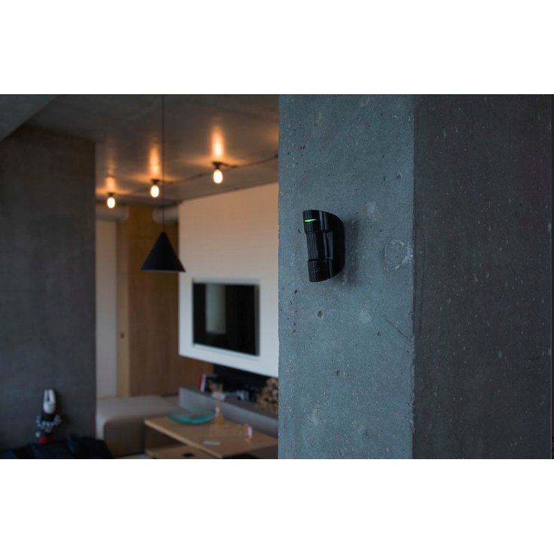 Das Gerät kombiniert die Funktionen von zwei Meldern — einem Bewegungsmelder und einem Glasbruchmelder. Es erkennt Bewegungen im Raum aus bis zu 12 Metern Entfernung und registriert Glasscherben aus einer Entfernung von bis zu 9 Metern von Fenstern.