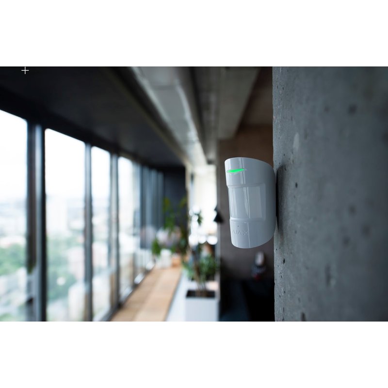 Drahtloser kombinierter Bewegungs- und Glasbruchmelder. Das Gerät schützt den Raum vor Eindringlingen, die durch Türen und Fenster einsteigen, und überwacht den aktuellen Zustand von Glas.