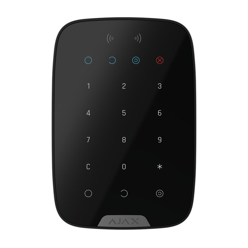 Das KeyPad Plus ist eine kabellose Touch-Tastatur zur Steuerung des Ajax-Sicherheitssystems mit Hilfe von geschützten Karten und Anhängern. Das Gerät wird im Innenbereich angebracht und unterstützt den „stillen Alarm“, wenn ein Bedrohungscode eingegeben wird. Die Leuchtanzeige zeigt den aktuellen Scharfschaltungszustand an.