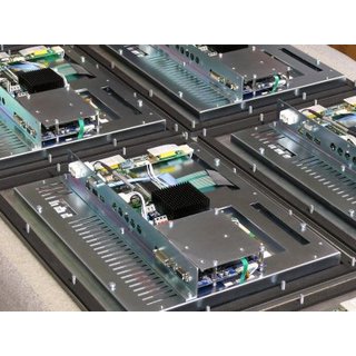 Gesucht wurde ein Industrie Monitor für den 24 h Einsatz, eingebaut in einer Kundenspezifische Frontplatte mit Folientastatur. Die Folientastatur mit A-Z Tasten und F1 - F12 Tasten für die Dateneingabe. Im Gehäuse sollte ein Autostart bei Stromzufuhr den den Monitor einschalten.